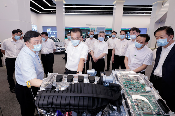 8月16日至17日,中共中央政治局常委、国务院总理李克强在深圳考察。这是17日上午,李克强在比亚迪公司考察。新华社记者 刘彬 摄