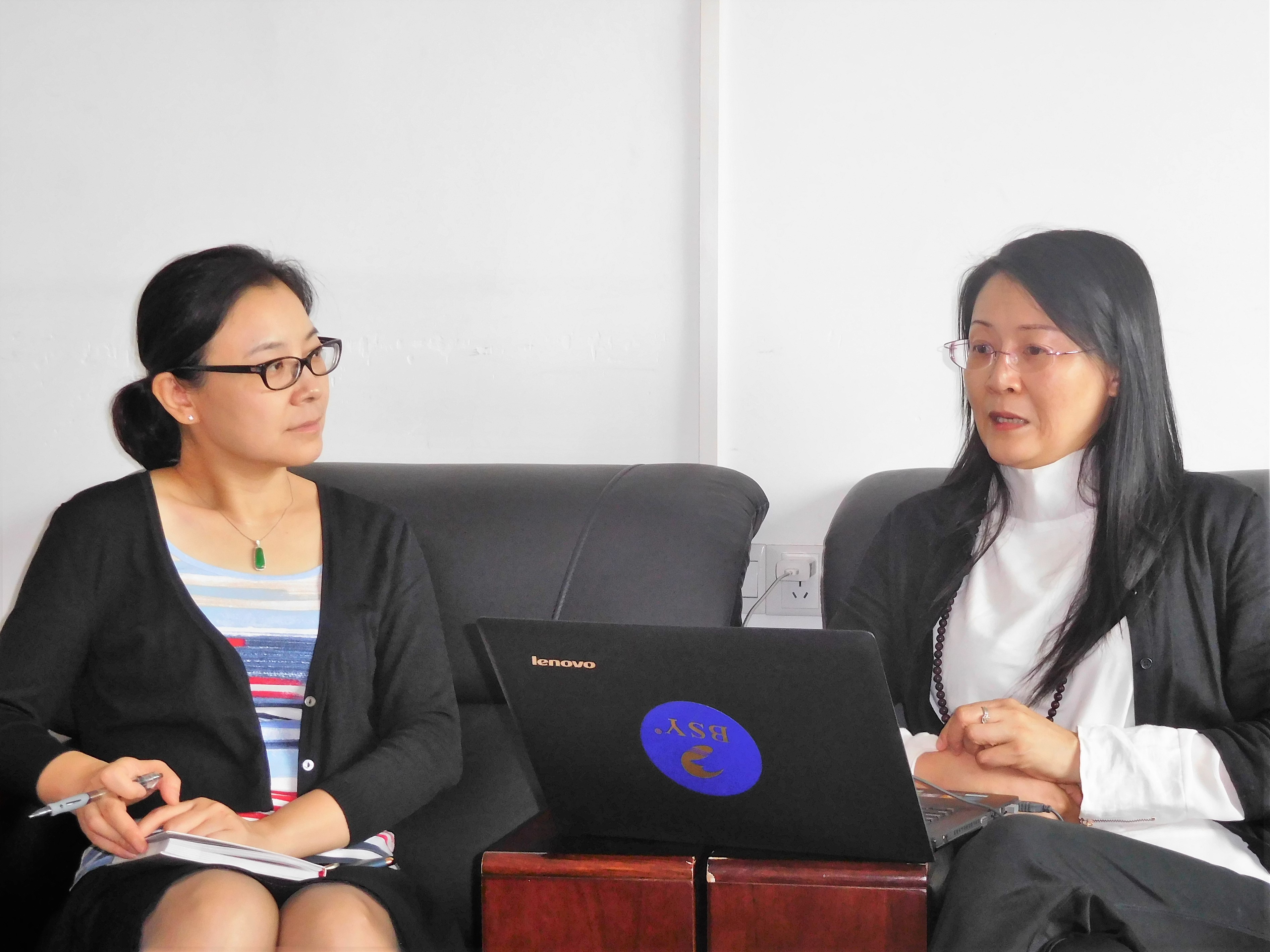 我会常务副会长、秘书长顾小英与来访企业代表交谈