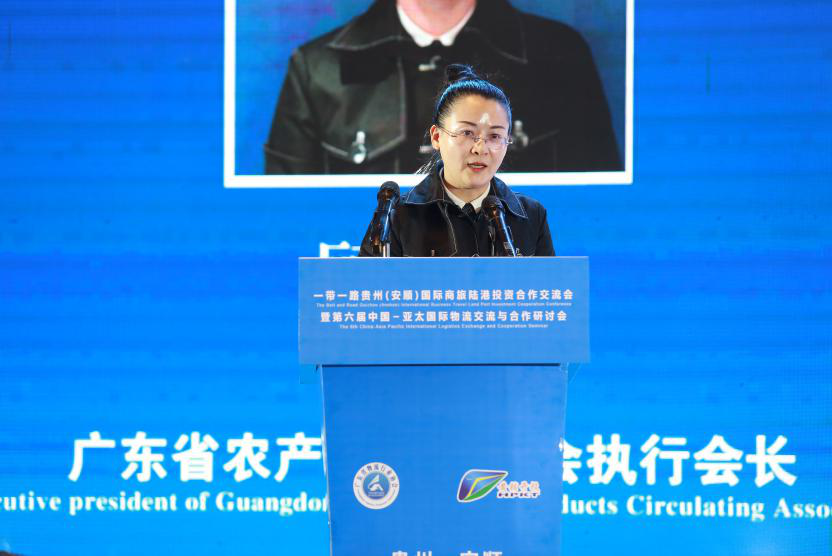 我会执行会长顾小英在主题发言中表示,协会成立以来一直致力于促进区域农业产业交流合作,推动现代农产品流通体系的建设。安顺拥有得天独厚的资源条件和区位优势,优质的粮油、畜禽、中药材等农业主导产业日益壮大,形成了一批批具有地方特色的农产品品牌,作为优质农产品的供应基地和产地物流市场条件非常成熟,广东作为销售市场具有巨大的产业商机,对安顺的优质农产品有着强大的吸纳能力。协会将通过供需效应推动安顺的农产品走出去,进入广东和粤港澳大湾区,辐射一带一路区域,搭建安顺地区与粤港澳大湾区的农产品商贸、农旅合作对接平台,对接更多广东的行业商贸物流企业关注和参与贵州(安顺)国际商旅陆港投资合作,带动安顺和广东间物流市场的建设和招商发展。